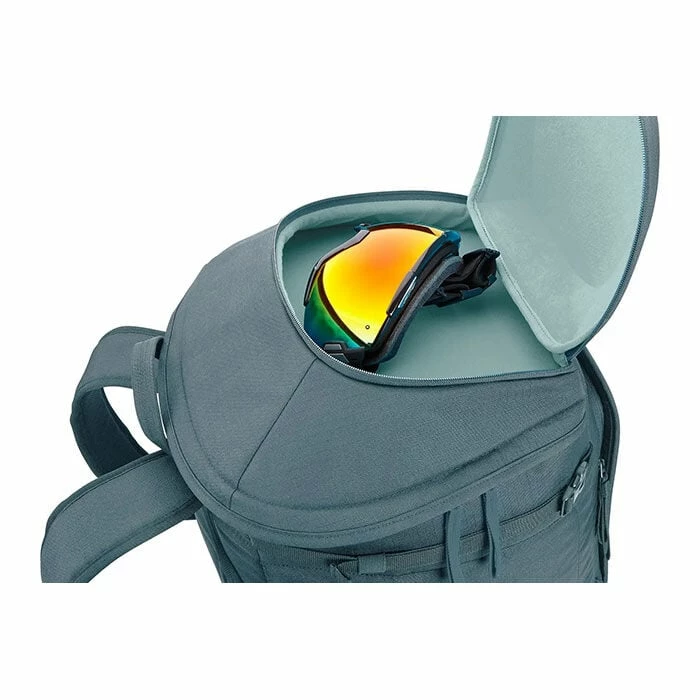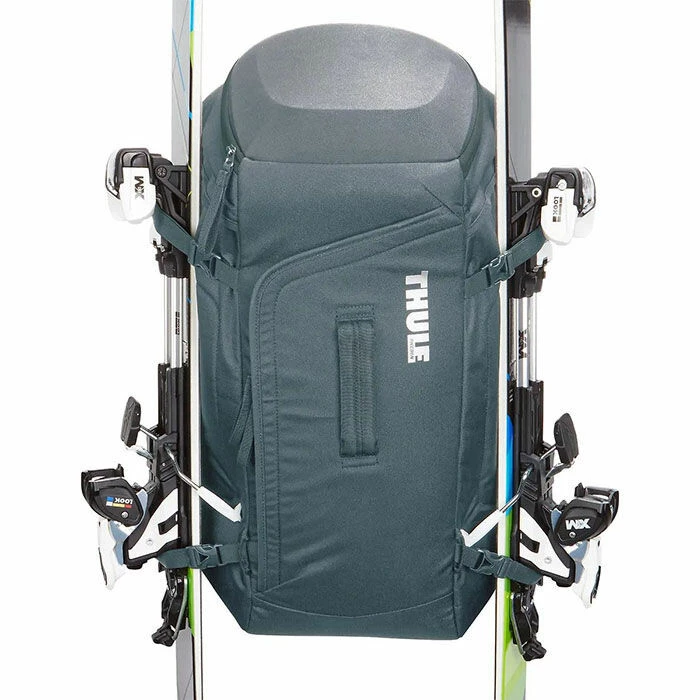 The Thule RoundTrip is a ski/snowboard boot backpack designed to keep your feet dry, your goggles safe and your gear organized. Store and transport boots in rear-loading compartment. Conveniently change in and out of boots in any location and keep feet dry by flipping down backpanel door for use as a standing mat. Easily attach skis, board, poles, helmet or outerwear using external lash webbing.